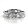 This stylish wedding band features 0.88 ct of shimmering diamonds, skillfully prong and channel set in a timeless design. The band showcases round diamonds on the sides, interspersed with baguette diamonds in the middle, for a stunning look that will be admired for years to come.