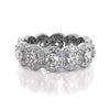 This 2.56 ct. round diamond eternity wedding band is a luxurious symbol of forever. This stunning eternity band flaunts a row of round diamonds encircled in smaller diamond halos for a beautiful, glimmering effect. This shared prong design creates an elegant look, for the perfect accessory to seal your vows.