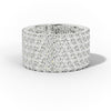 This sophisticated wide band showcases five rows of meticulously set round diamonds, totaling 5 carats. The continuous design ensures maximum brilliance and a striking visual impact, perfect for those seeking a luxurious and impressive eternity band.