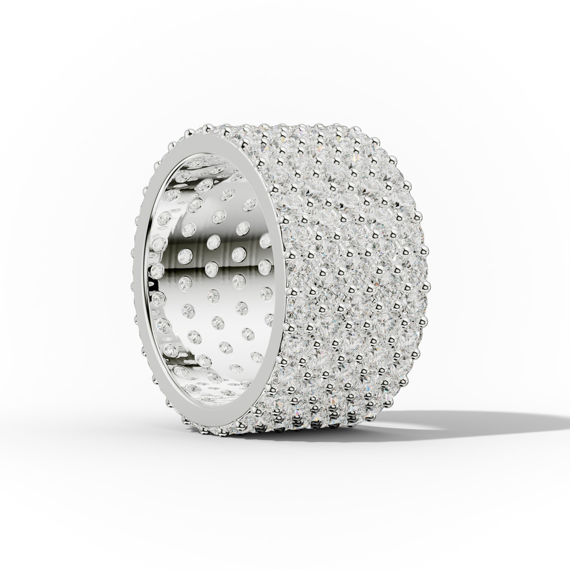 Wide diamond anniversary bands are rings with a broader band and an array of diamonds, providing a striking and luxurious look.