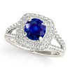 Elevate your style with our exquisite Genuine Blue Round Sapphire Ring. This stunning ring features a 1.35 ct. blue sapphire, surrounded by a 0.70 ctw. double row diamond cushion halo and a split V diamond shank. Experience luxury and sophistication with every wear.