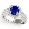 Add a touch of timeless elegance to your look with our Genuine Blue Round Sapphire Ring. The dazzling 1.35 ct. sapphire is accented by a 0.75 ctw. diamond cushion halo and triple row diamond band for ultimate sparkle and sophistication. Elevate any outfit and make a statement with this stunning piece.