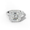 The Adeline Engagement Ring combines timeless elegance with expert craftsmanship. Featuring a refined Asscher cut center stone, it is beautifully enhanced by a French pavé halo and side stones that amplify its sparkle. Set in a sophisticated cathedral setting, this ring offers both elevated style and secure comfort, making it a distinguished choice for a meaningful commitment.