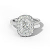 The Adeline Engagement Ring features a striking elongated cushion-cut center stone, designed to enhance the finger's elegance and elongate the hand's appearance. Surrounding the center stone, a delicate French pavé halo and side stones add refined brilliance and timeless sophistication. Expertly crafted, this ring balances classic design with a modern touch, making it a distinguished choice for a memorable engagement.
