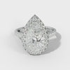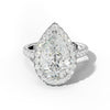 The Adeline Engagement Ring showcases a sophisticated pear-shaped center stone beautifully framed by a French pave halo and delicately adorned with side stones. This expertly crafted design highlights exceptional brilliance and elegance, making it a timeless choice to symbolize your commitment. The French pave setting enhances sparkle while ensuring durability, perfect for daily wear.