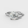 This Alice Round Diamond Engagement Ring features a classic solitaire design, showcasing a brilliant round diamond secured by a four-claw prong setting. The precise setting maximizes light reflection, enhancing the diamond’s natural sparkle.