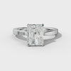 The Amaya Radiant Diamond Engagement Ring presents a radiant-cut diamond in a sophisticated four-prong solitaire setting. Known for its brilliant faceting and rectangular silhouette, the radiant cut combines the sparkle of a round brilliant with the elegant lines of a cushion shape. The four-prong mounting offers optimal stability while maintaining an understated profile that allows the diamond's natural radiance to command attention.