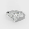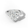 This Aspen Engagement Ring showcases a distinctive heart-shaped diamond set within a cathedral mounting that emphasizes vertical elegance and presence. The U-prong halo design encircles the center stone with precisely positioned accent diamonds, maximizing light reflection and visual impact. Side stones complement the composition while the U-prong setting provides secure, durable support for your precious gemstone. The cathedral architecture creates a graceful silhouette that frames the heart cut beautifully.