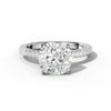 This Autumn Engagement Ring showcases expert craftsmanship with its elegant cushion-cut center stone, enhanced by a hidden halo for subtle brilliance. The 3-row pave set side stones and pave setting underneath add exceptional sparkle from every angle, creating a timeless design that combines sophistication with intricate detailing. Perfect for those seeking a unique balance of classic charm and contemporary luxury.