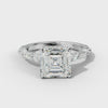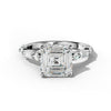 The Clara Engagement Ring delivers sophisticated elegance through expertly balanced design elements. The asscher-cut diamond commands attention with its distinctive geometric faceting pattern. Marquise and baguette side stones complement the center stone, creating dimensional contrast and amplifying overall sparkle. Precision pave-set prongs secure each stone with meticulous craftsmanship, while the cathedral band offers graceful architectural support and visual elevation. The concealed halo setting positioned beneath the asscher enhances light performance with understated refinement.