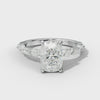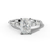 Introducing the Clara Elongated Cushion Cut Engagement Ring, a sophisticated design that showcases timeless elegance. This stunning piece features a hidden halo setting that frames your center stone with subtle brilliance, while round diamond prongs secure the elongated cushion cut diamond with precision. Cathedral shoulders provide architectural grace, complemented by marquise and baguette side stones that enhance the ring's overall sparkle and dimension.