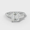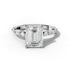 The Clara Emerald Cut Engagement Ring presents a refined choice for discerning buyers. The emerald cut center stone delivers distinctive step faceting that emphasizes clarity and linear elegance. A concealed halo of round brilliant diamonds surrounds the center stone, amplifying light return without disrupting the clean lines of the emerald cut. Marquise-shaped side stones introduce graceful curves, while baguette accents provide architectural definition along the band. T