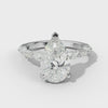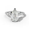 The Clara Pear Shape Engagement Ring showcases an elegant pear-cut center stone framed by a sophisticated hidden halo design that amplifies brilliance while maintaining a refined silhouette. Pavé-set round diamond accents encircle the center stone, creating a luminous halo effect that enhances sparkle and depth. Marquise and baguette side stones add architectural interest and complementary sparkle, elevating the ring's overall presence.