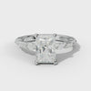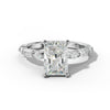 The Clara Radiant Cut Engagement Ring showcases a stunning radiant-cut center stone elevated by a hidden halo design that amplifies brilliance and visual impact. Delicate pave-set prongs secure the center stone while cathedral-style shoulders provide architectural elegance and structural support. Complementing the main stone, marquise and baguette side stones add sophisticated dimension and enhance the ring's overall sparkle.