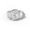 The Cleo Elongated Cushion Diamond Engagement Ring showcases a sophisticated three-stone design that balances elegance with timeless appeal. The elongated cushion cut center stone is secured in a protective bezel setting, which not only enhances the diamond's brilliance but also provides exceptional durability for everyday wear.