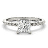 The Eleanor Princess Diamond Solitaire Engagement Ring is a timeless and elegant choice. Featuring a classic four prong setting and dazzling princess diamond, the sleek rope design band adds an extra touch of sophistication to the piece.