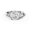 The Elise Cushion Cut Engagement Ring showcases a stunning cushion-cut center stone, expertly set in a secure basket setting. Its distinctive side stones add unique character and brilliance, enhancing the ring's overall elegance. This design balances classic sophistication with a contemporary twist, making it a timeless choice for those seeking refined craftsmanship and exceptional style.