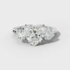The Elsa Heart Diamond Engagement Ring features a captivating heart-cut diamond as its centerpiece, complemented by round brilliant side diamonds in an expressive three-stone setting. The four-prong mounting provides elegant security while preserving an airy aesthetic that allows maximum light performance through each stone.