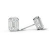 These emerald cut diamond stud earrings showcase the geometric precision of this classic faceting style, enhanced by a protective bezel setting that secures each stone while maintaining visual clarity.
