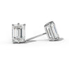 These emerald cut diamond studs exemplify restrained sophistication through their distinctive step-cut faceting and linear geometry. The six-prong mounting provides exceptional security while preserving the stone's inherent clarity and luminosity.