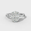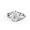 The Freya Oval Diamond Engagement Ring features a solitaire oval diamond set in a traditional four-prong setting, expertly crafted to maximize light reflection and showcase the gem’s natural brilliance. This refined ring combines timeless elegance with a secure design, making it a perfect choice for a sophisticated engagement symbol.