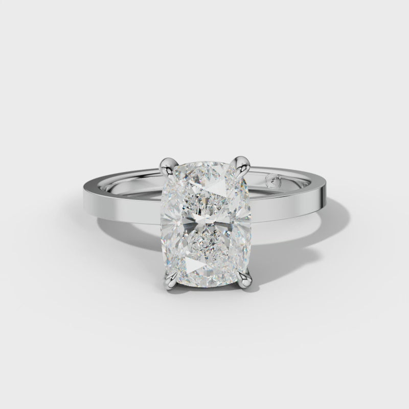 The Gabriella Solitaire Engagement Ring features a stunning elongated cushion-cut center stone secured by a classic prong setting. This design enhances the diamond’s brilliance while creating an elegant, timeless silhouette. Ideal for those seeking sophistication with a modern twist, the ring offers both durability and exceptional sparkle, making it a perfect symbol of enduring commitment.