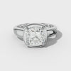 The Giselle Cushion Diamond Engagement Ring showcases a stunning cushion-cut diamond secured in a refined four-claw prong setting. This classic solitaire design emphasizes the stone's brilliance while the secure prong setting ensures your diamond remains protected and prominently displayed.