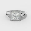 The Giselle Princess Cut Engagement Ring showcases a stunning solitaire design that places your diamond at the center of attention. Its four-claw prong setting provides secure, elegant support while allowing maximum light to flow through the stone, enhancing brilliance and sparkle.