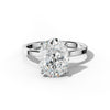 This Engagement Ring features a meticulously set oval diamond held by a secure four-prong setting. Its hidden halo design subtly amplifies the center stone’s brilliance, offering a sophisticated sparkle without detracting from the diamond’s elegant shape. This ring combines expert craftsmanship with timeless design, making it an ideal symbol of enduring love and commitment.