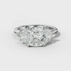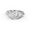 A sophisticated engagement ring showcasing a cushion-cut diamond accented by half-moon side stones. The complementary diamond shapes create brilliant sparkle and a distinctive look that works beautifully for any occasion.