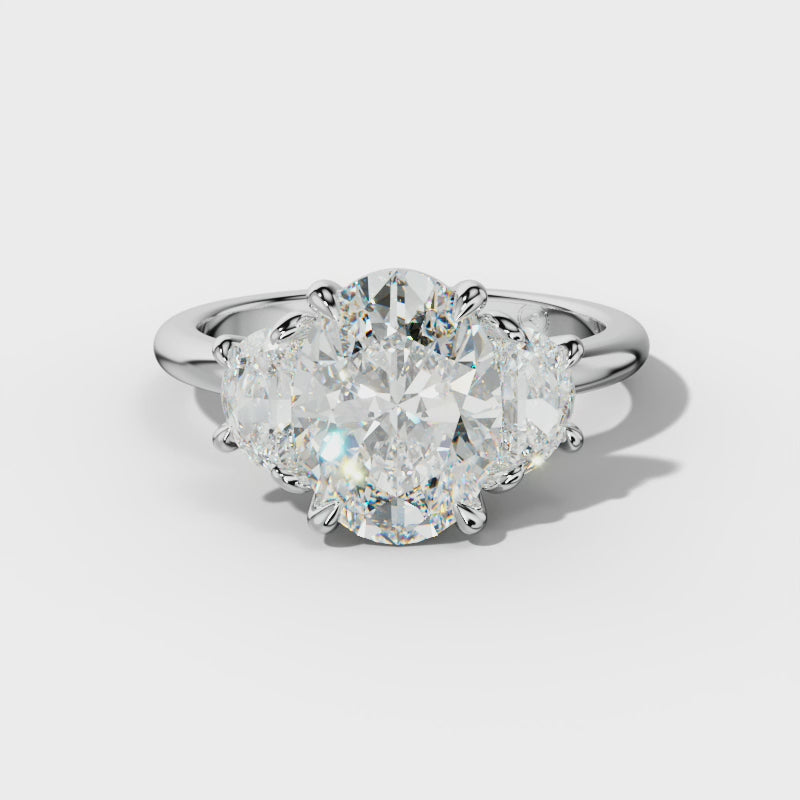 Itzel Oval Diamond Half Moon Side Engagement Ring