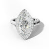 The Josephine Engagement Ring showcases a brilliant marquise-shaped center diamond framed by a shimmering halo that maximizes radiance. Its cathedral setting gracefully elevates the stone, providing a perfect blend of elegance and structural support. This design highlights expert craftsmanship while offering a timeless yet distinctive style ideal for those who appreciate refined sophistication in their engagement jewelry.