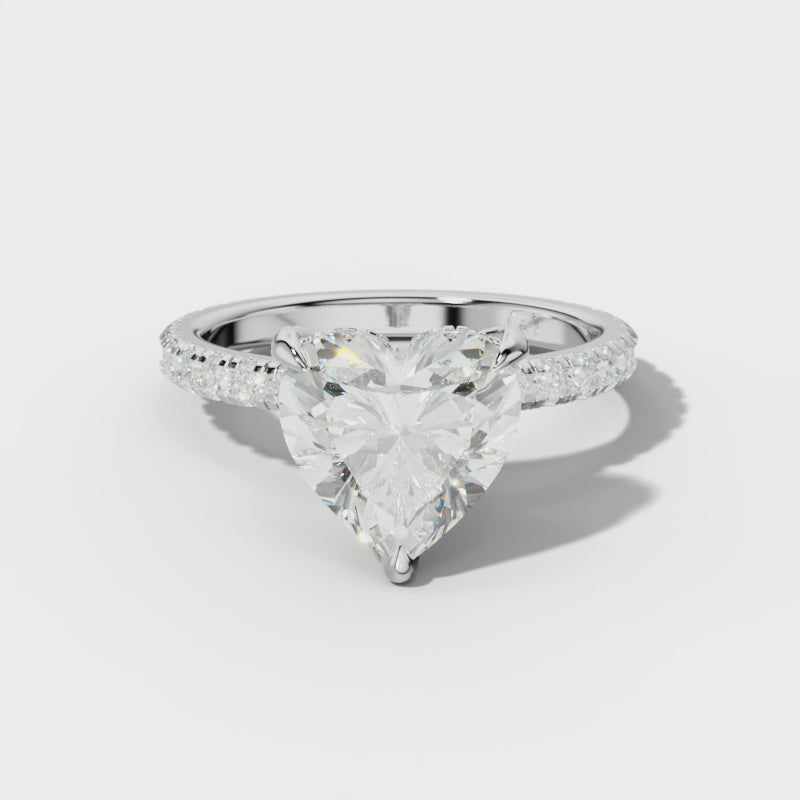 The Juliet Heart Cut Engagement Ring elegantly combines a precisely cut heart-shaped center stone with a subtle hidden halo that intensifies its brilliance. Enhanced by carefully positioned side stones, this design achieves a harmonious blend of romance and refined craftsmanship. The ring’s intricate details create a unique silhouette that appeals to those who appreciate expert artistry and timeless elegance in their engagement jewelry.