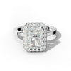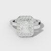 The Lila Engagement Ring features a dazzling radiant-cut center stone, expertly set with a pave halo and prong setting to enhance brilliance and sparkle. This design combines timeless elegance with meticulous craftsmanship, ensuring a secure fit and stunning visual impact. Ideal for those seeking a sophisticated, radiant statement in their engagement jewelry.