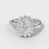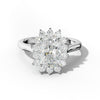 The Lillian Engagement Ring combines timeless elegance with contemporary design. This cathedral setting features a stunning elongated cushion cut stone, celebrated for its brilliant sparkle and romantic silhouette. The delicate floral halo frames the center stone with intricate detailing, amplifying light and creating an enchanting visual presence. The elevated cathedral band provides structural support while showcasing the stone's beauty from every angle.