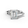 The Lilly Emerald Cut Engagement Ring showcases an expertly crafted hidden halo that amplifies the central emerald-cut diamond’s natural fire and elegance. Its four-prong setting provides both security and a minimalist frame, allowing the gemstone’s clean lines and striking facets to take center stage.