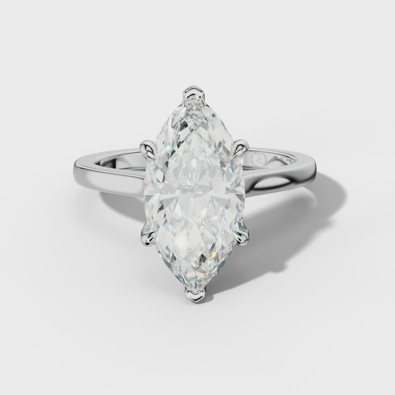 The Lilly Marquise Diamond Engagement Ring showcases a beautifully elongated marquise-cut gemstone, expertly designed to maximize brilliance and elegance. Its hidden halo setting subtly enhances the center stone’s sparkle, adding depth and sophistication while maintaining a sleek profile.