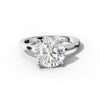 The Lilly Round Diamond Engagement Ring features a expertly crafted prong setting that securely showcases the central round diamond, maximizing its brilliance. The hidden halo design adds subtle depth and sparkle without detracting from the ring’s classic elegance, creating a sophisticated look that enhances the diamond’s presence from every angle.