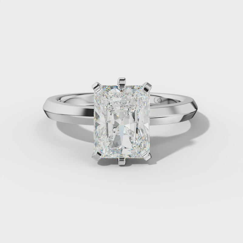 The Lina Radiant Diamond Engagement Ring features a brilliant radiant-cut diamond securely held by a classic six-prong setting, enhancing its sparkle and durability. Designed for timeless elegance, this solitaire ring combines expert craftsmanship with lasting wearability, making it an exceptional choice to symbolize your commitment.