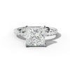 The Lucy Engagement Ring showcases a stunning princess-cut center stone, accentuated by pave-set side stones that add brilliance from every angle. Delicate underneath stones enhance the ring’s sparkle, creating a sophisticated look that combines elegance with expert craftsmanship. This design balances timeless style with intricate detail, making it a perfect symbol of lasting commitment.