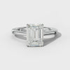 The Millie Emerald Cut Engagement Ring features a striking emerald-cut diamond that commands attention with its distinctive step facets and linear geometry. Set in a secure four-prong setting, the center stone is framed by a hidden halo that amplifies sparkle and presence while maintaining the clean, architectural lines the emerald cut is known for. Accented with complementary side stones, this ring delivers sophisticated glamour with a modern edge, perfect for those who appreciate bold geometry and refined craftsmanship.