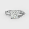 The Millie Princess Cut Engagement Ring showcases a stunning princess-cut center stone secured in a refined four-prong setting that maximizes light return and visibility. Complemented by an elegant hidden halo design, this ring features additional side stones that enhance brilliance while maintaining a sophisticated, streamlined aesthetic. The hidden halo construction provides extra sparkle and structural support while preserving the clean lines of the center stone.