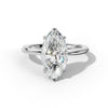 The Myra Marquise Diamond Engagement Ring features a distinctive marquise-cut diamond held securely in a refined six-prong solitaire setting. This architectural design maximizes light return through the diamond's faceted surfaces while the prong framework provides exceptional stability and durability.