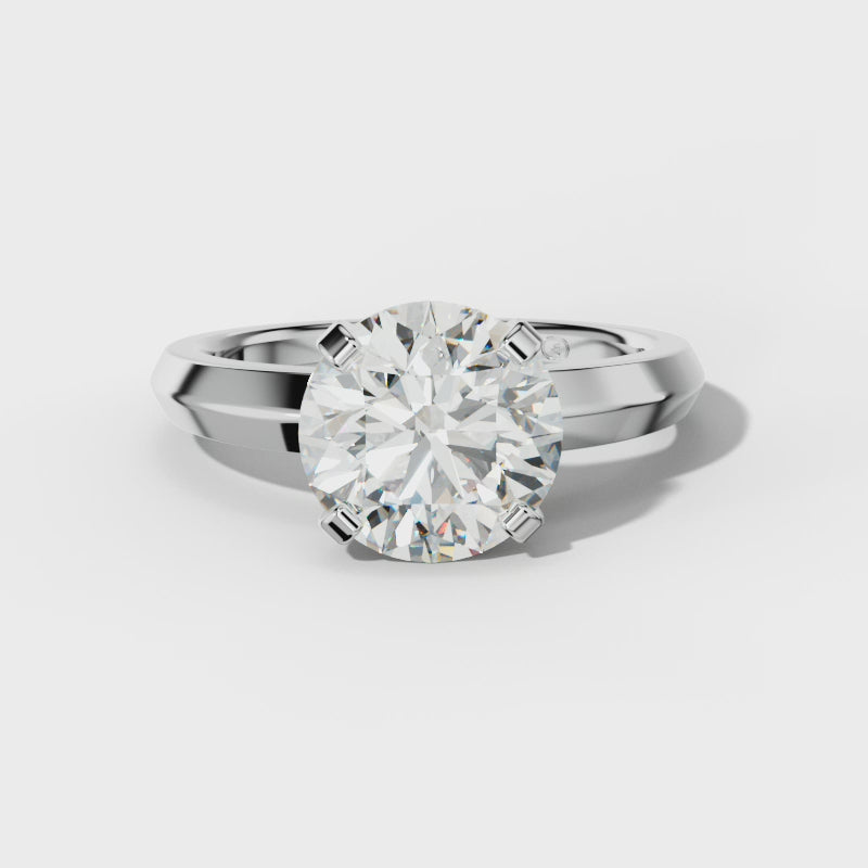 The Nia Round Diamond Engagement Ring features a classic solitaire design, showcasing a sparkling round diamond securely held by a four-prong setting. Its minimalist elegance highlights the diamond's brilliance and fire, making it an enduring symbol of commitment and timeless beauty. Perfect for those seeking refined sophistication with expert craftsmanship.