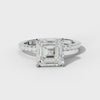 The Noor Asscher Diamond Engagement Ring expertly combines a classic Asscher-cut diamond with a pave set design and a hidden halo. The pave diamonds delicately accentuate the band, adding refined brilliance, while the concealed halo subtly amplifies the center stone’s radiance.
