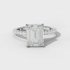 The Noor Emerald Cut Engagement Ring showcases an exquisite emerald-cut center stone, framed by a delicate pave setting that amplifies its brilliance. Featuring a hidden halo design, this ring combines timeless elegance with modern sophistication, ensuring stunning sparkle from every angle.