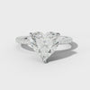 The Noor Heart Diamond Engagement Ring elegantly showcases a pave set band that enhances the ring's brilliance with subtle shimmer. Its hidden halo design surrounds the central heart-shaped diamond, adding depth and a unique layered sparkle that elevates the overall aesthetic.