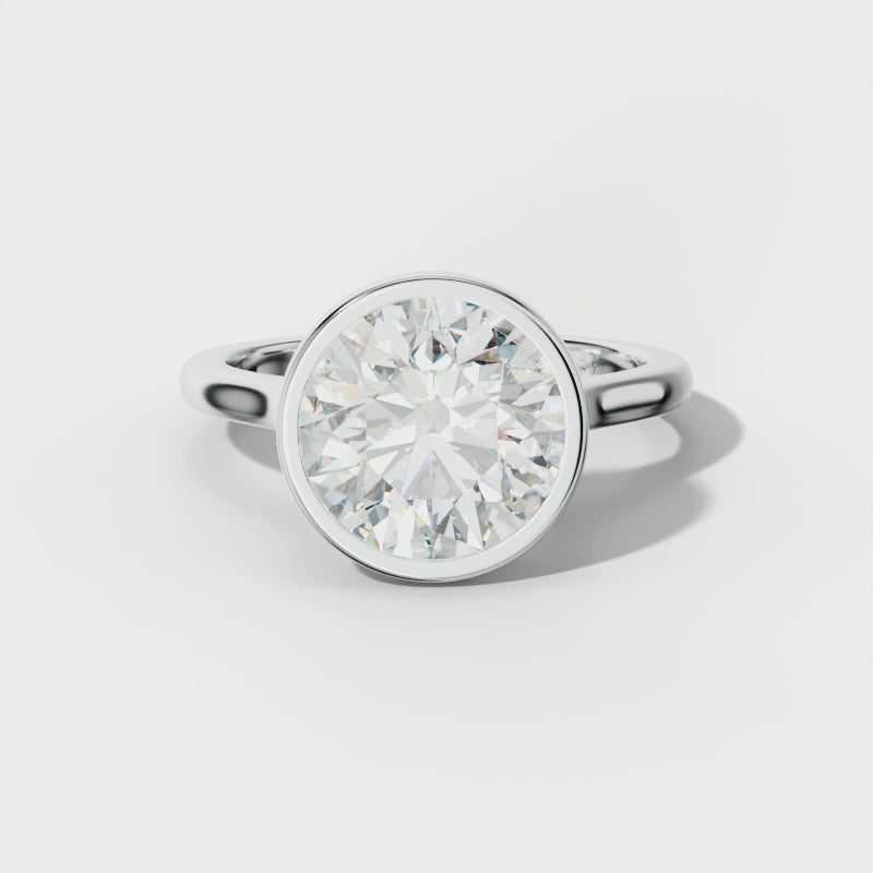 Elevate your commitment with the Nova Round Diamond Engagement Ring, featuring a sleek bezel setting that securely showcases a brilliant round diamond. Accented by precisely cut side stones, this ring blends modern design with timeless elegance, ensuring lasting durability and exceptional sparkle.