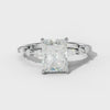 The Rosie Radiant Diamond Engagement Ring features a brilliant radiant-cut diamond centerpiece, expertly set with four secure prongs to enhance its fire and brilliance. Accented by carefully selected side stones, this ring offers a sophisticated balance of sparkle and structural integrity.