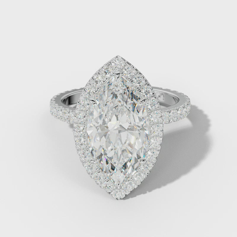 The Sadie Engagement Ring offers a sophisticated design highlighted by a stunning marquise-cut center stone. It features a pave-set halo that enhances brilliance and side stones for added sparkle. Thoughtfully detailed, the ring also includes pavé stones underneath, ensuring a radiant shine from every angle. This exquisite craftsmanship creates a timeless and elegant choice for celebrating your commitment.